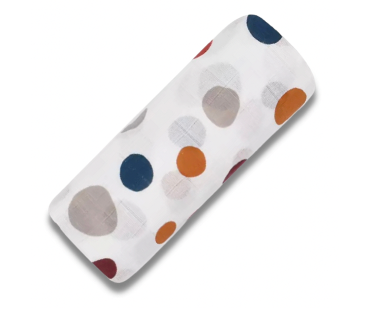 Beautiful muted spotted printed swaddle muslin, perfect for swaddling, cuddling, versatile covering, a handy piece to go around your little one. Soft and breathable.