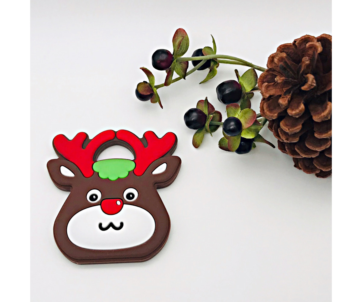 Reindeer teether toy is practical for teething baby. Easy for little hands to grab and the soft silicone toy is safe to chew on. Helps to soothe sore little gums. Colorful designs and playful characters that your baby will easily engage with.