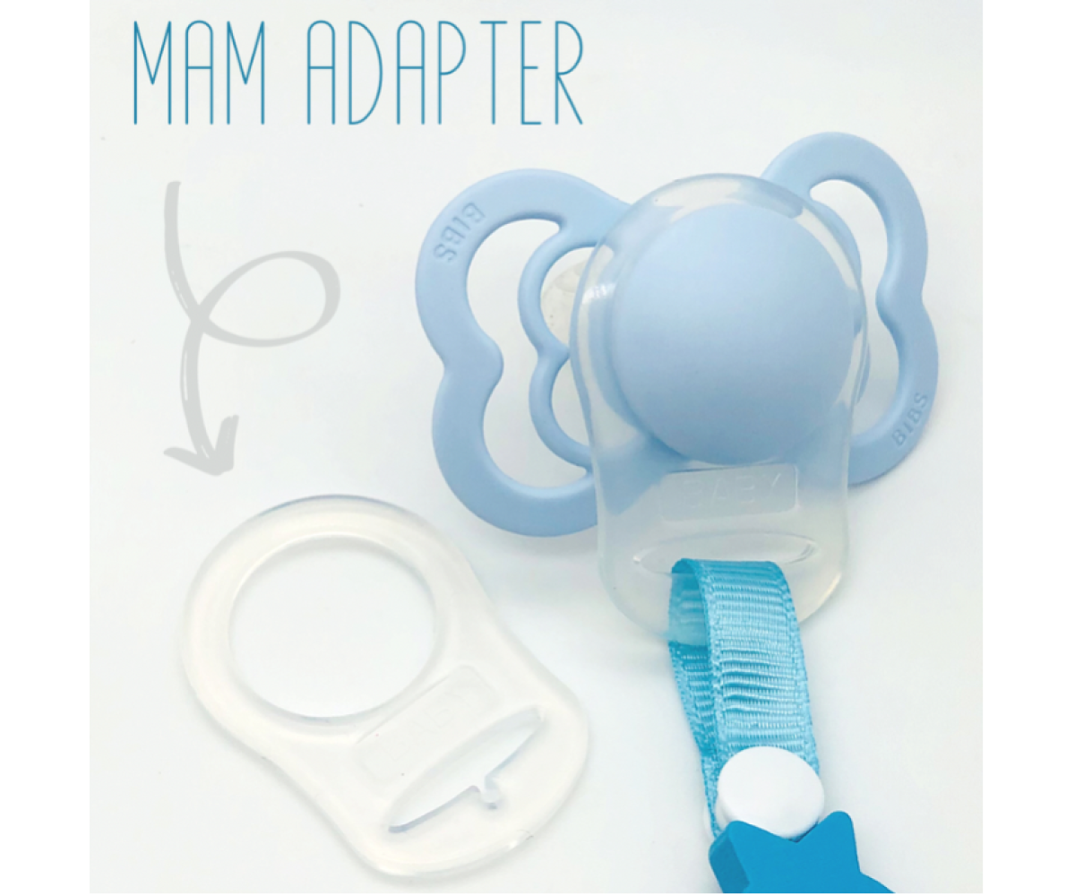 If you are using MAM or NUK dummies (with no handle on, just a button in the middle) you will need a MAM adapter to attach your dummy to the pacifier clip. We are selling the Mam adapter separately.