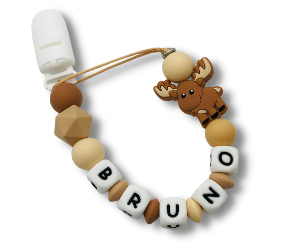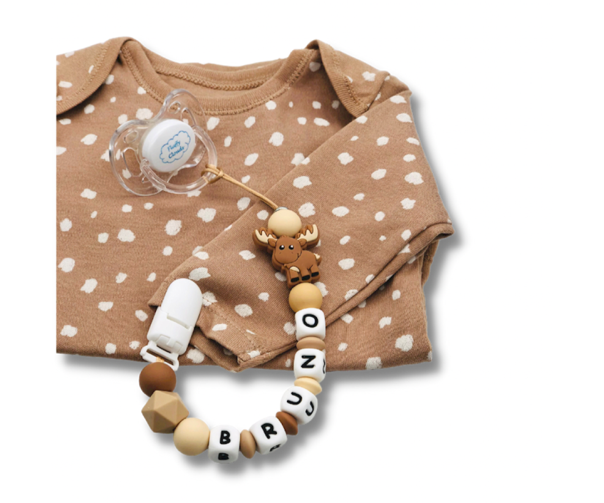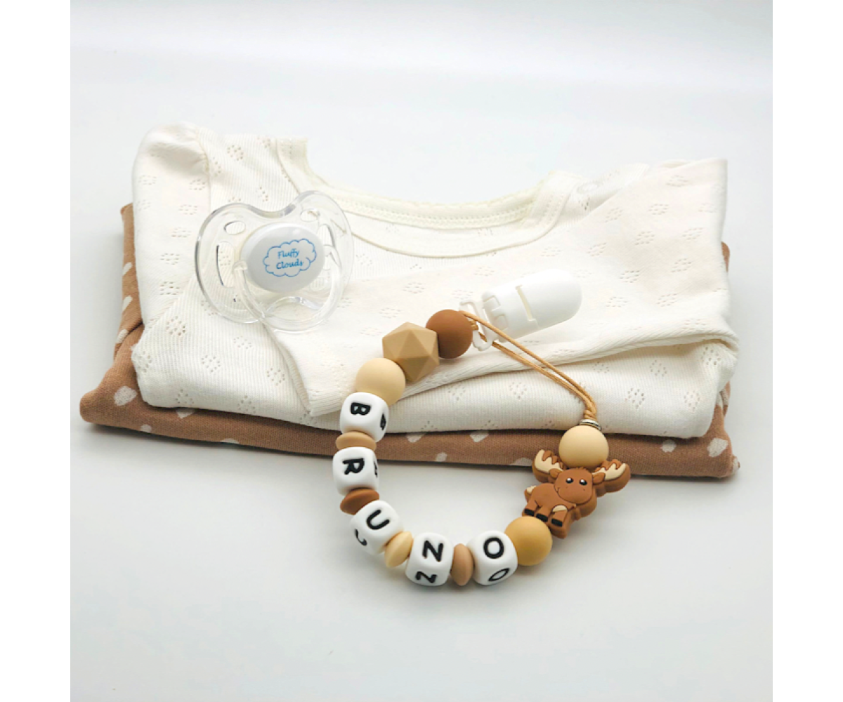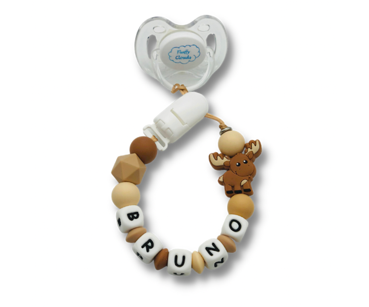 FLUFFY CLOUDS Natural Reindeer Pacifier Clip is a practical accessory for parents and babies. Modern stylish designs that are easy to use and fun to chew on! A safe and hygienic way to prevent the dummy from getting lost or dirty. Our pacifier clips come in a variety of colours, shapes and interesting textures. Carefully handmade in the UK. Suitable from birth.