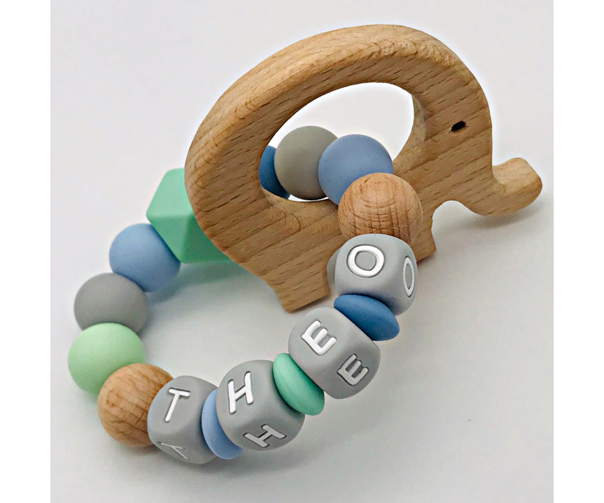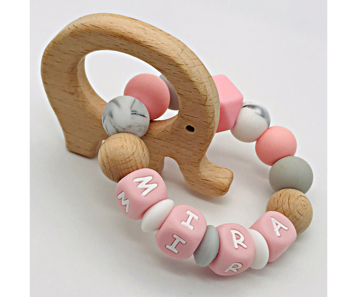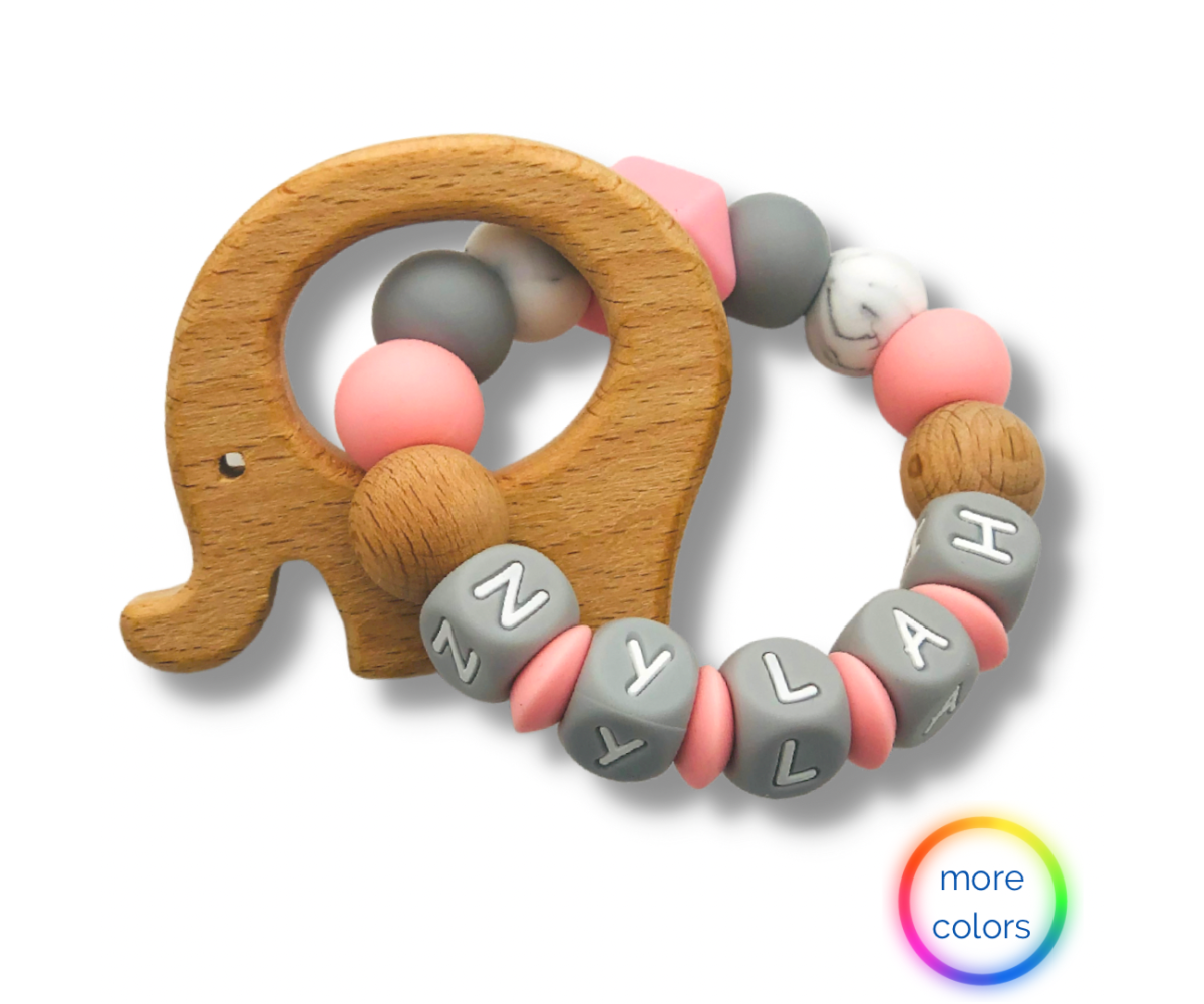 Cute Elephant personalized silicone teething ring is the perfect solution to chew on!