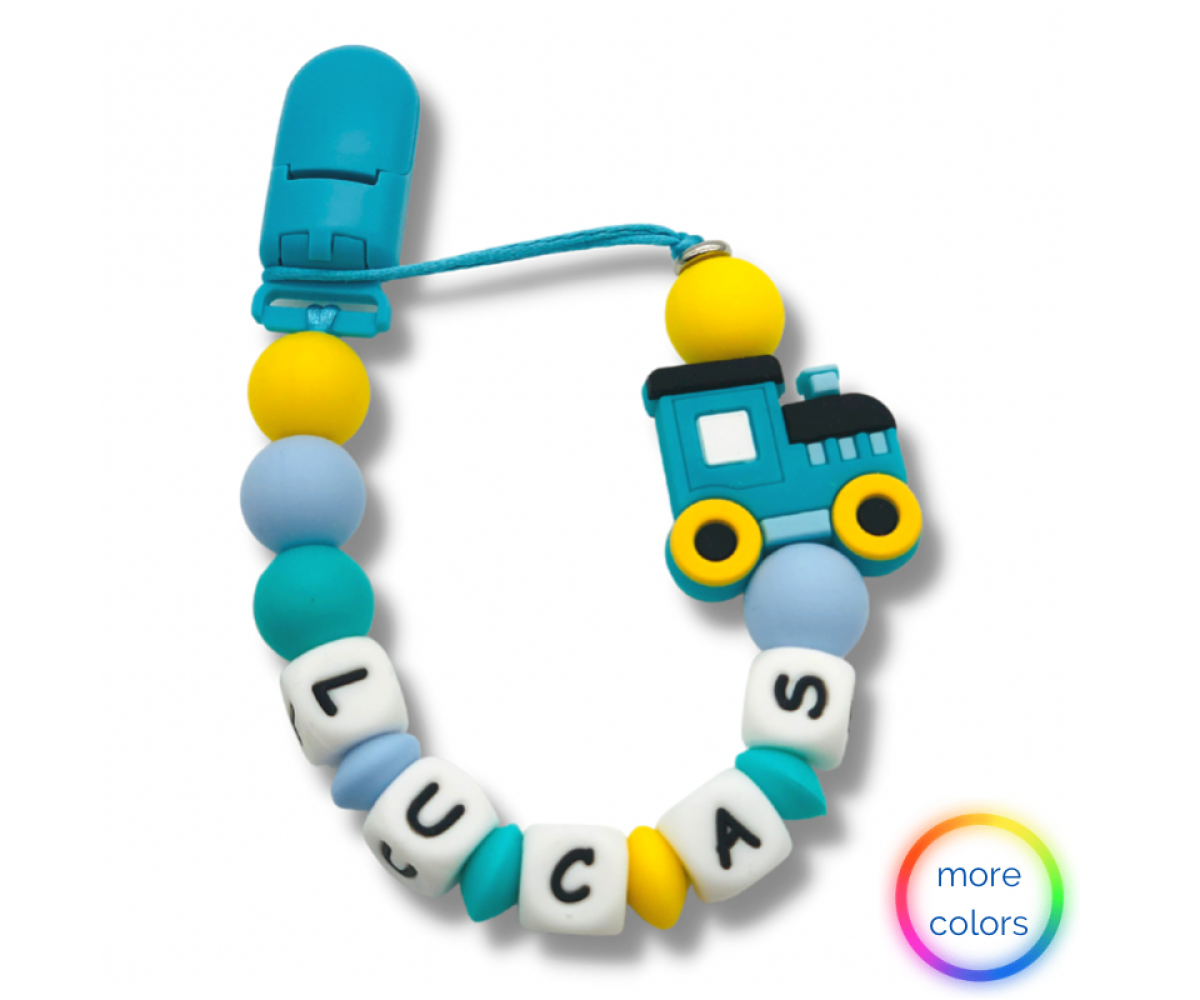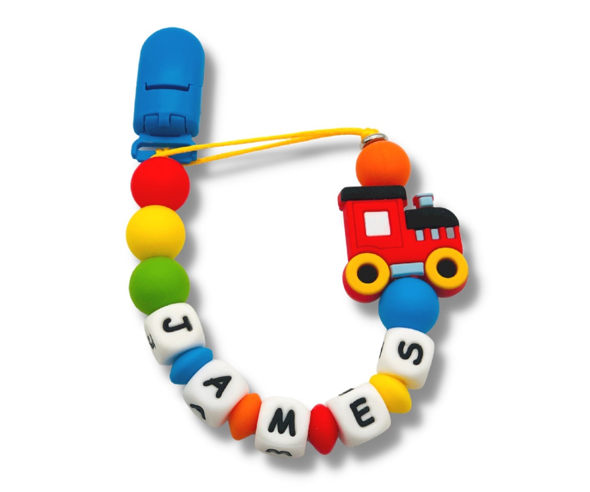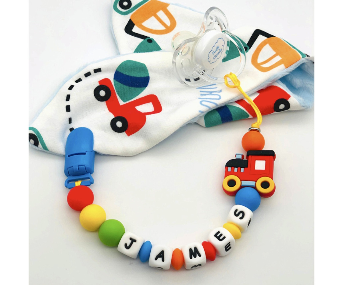 FLUFFY CLOUDS Train Pacifier Clip is a practical accessory for parents and babies. Modern stylish designs that are easy to use and fun to chew on! A safe and hygienic way to prevent the dummy from getting lost or dirty. Our pacifier clips come in a variety of colours, shapes and interesting textures. Carefully handmade in the UK. Suitable from birth.