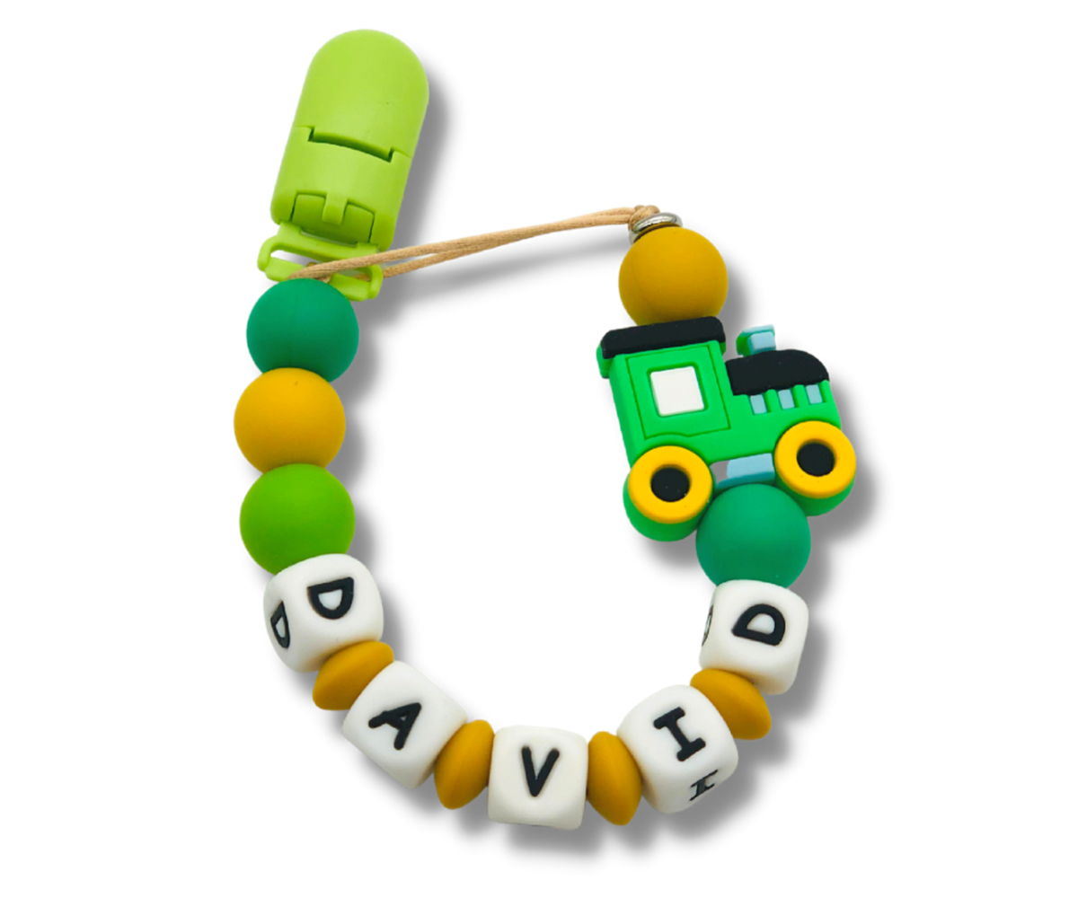 Tags: dummy clip, pacifier holder, soother chain, handmade, personalized, silicone chewable beads, baby name, baby shower gift, new born present, teething accessories