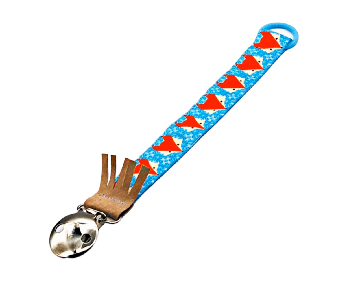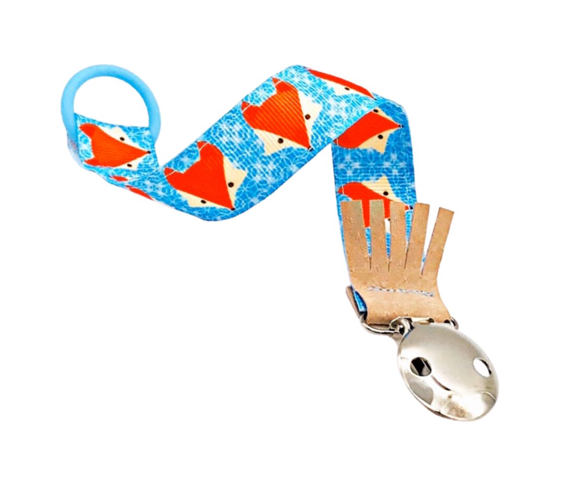 Fox Ribbon dummy clip is a stylish and practical way to prevent your dummy from falling on the floor! Beautiful fox pattern cheers up any outfit!