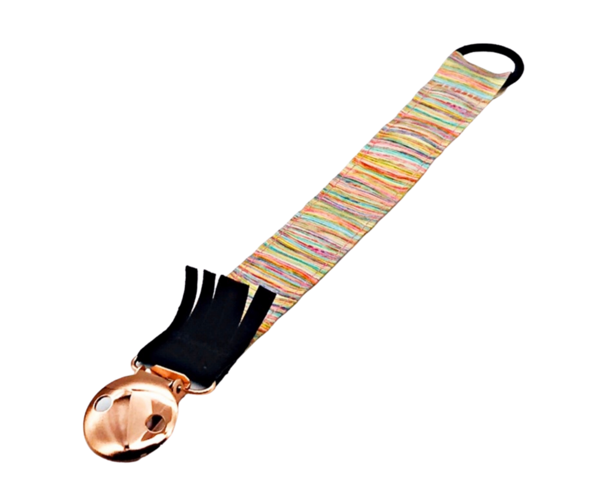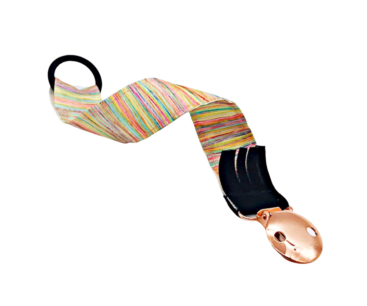 Rainbow Stripes Ribbon dummy clip is a stylish and practical way to prevent your dummy from falling on the floor!