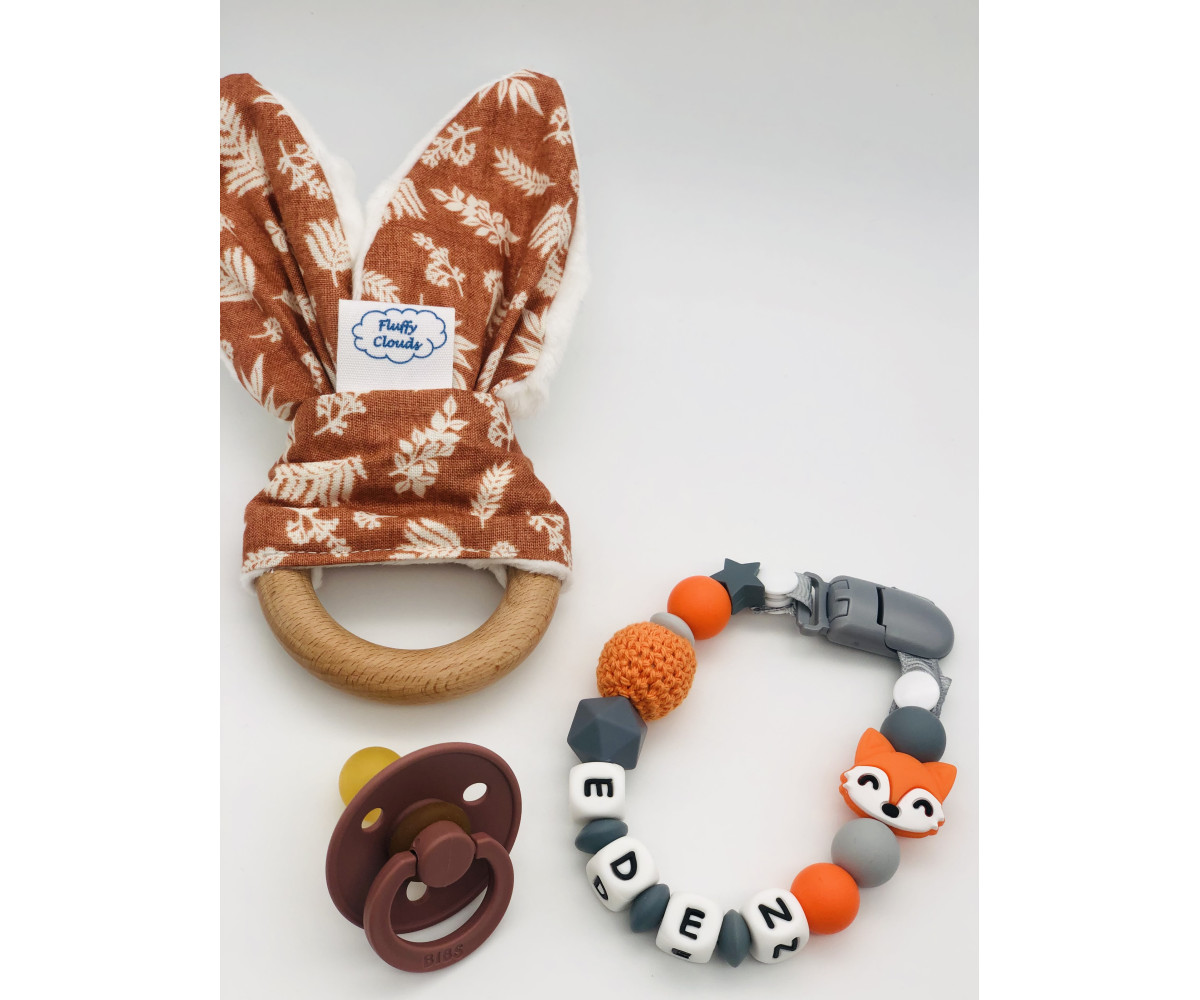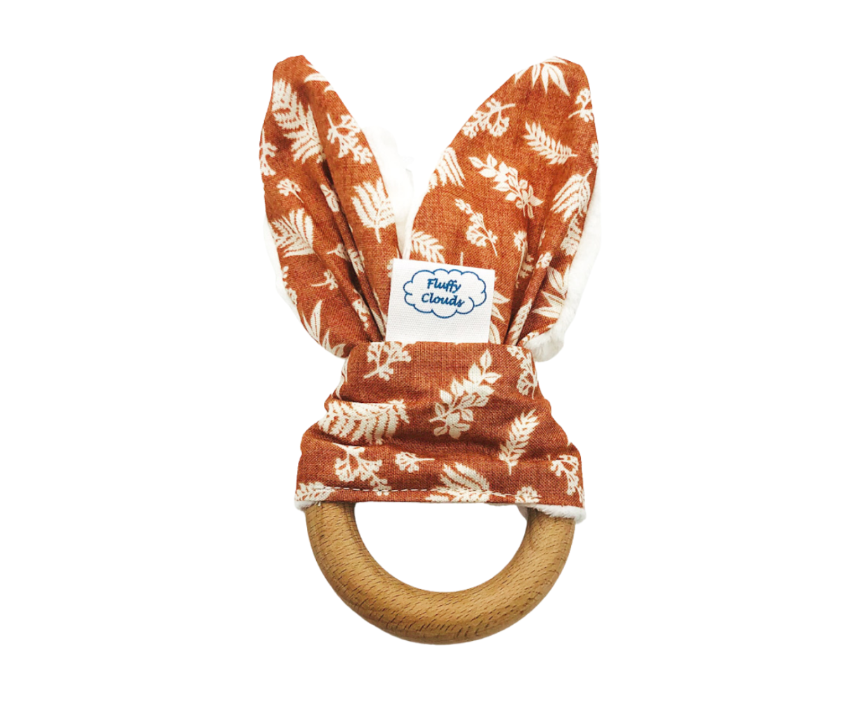 The playful Bunny Ears Teething Ring with colourful cotton printed fabric is a real joy for babies. Exciting patterns, high quality fabric which is smooth to touch with a safe and hygienic antibacterial beech wooden ring for sore gums to chew on.