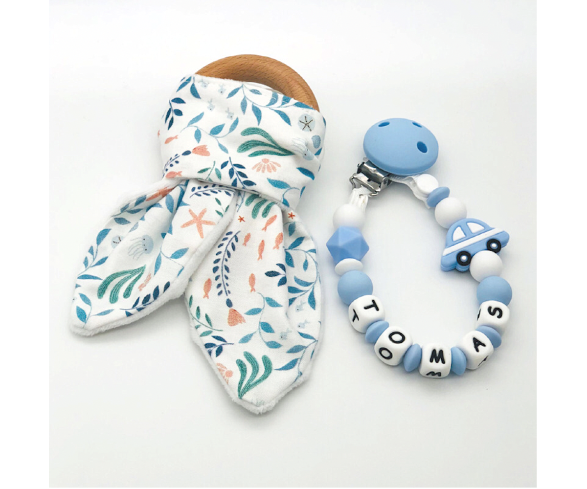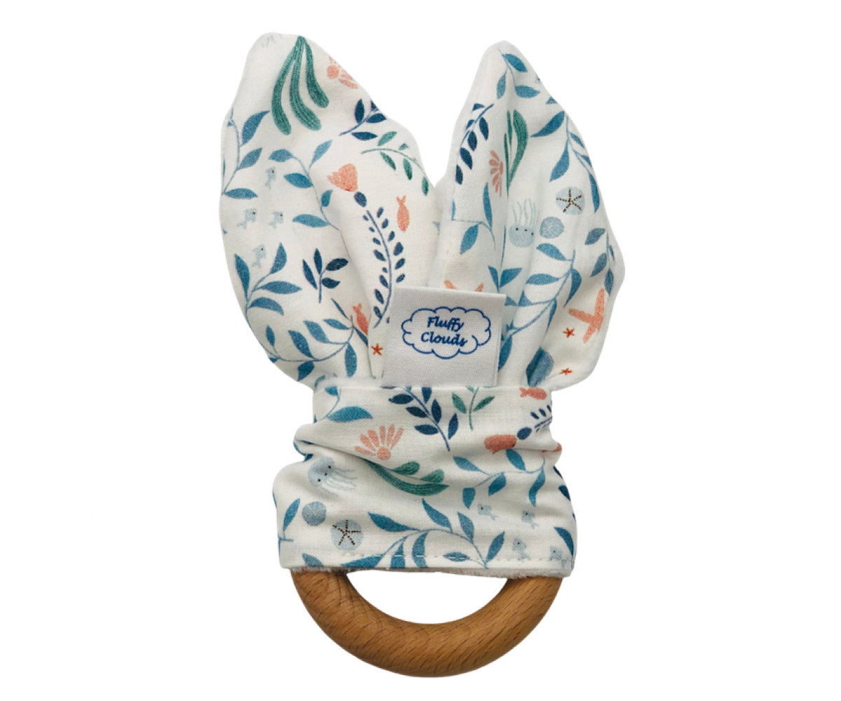 The playful Bunny Ears Teething Ring with colourful cotton printed vehicles fabric is a real joy for babies. Exciting patterns, high quality fabric which is smooth to touch with a safe and hygienic antibacterial beech wooden ring for sore gums to chew on.